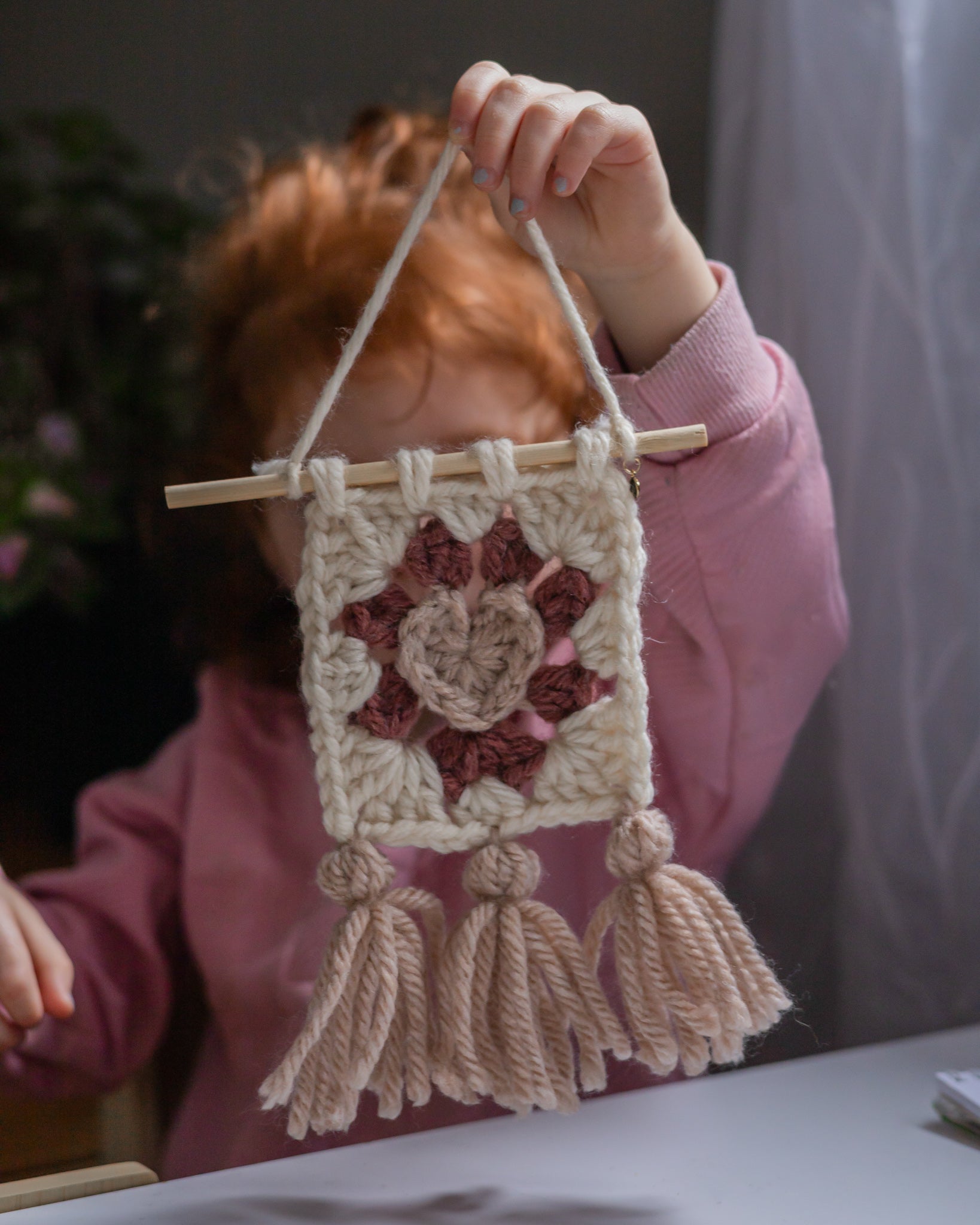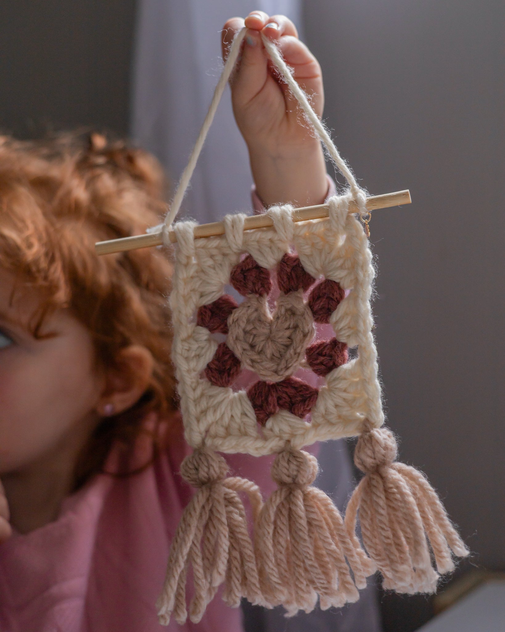 - Du haut de la corde pour l'accrocher jusqu'au bas des pompons, La décoration poétique mesure environ 10". La largeur du bâton de bois est de 6".