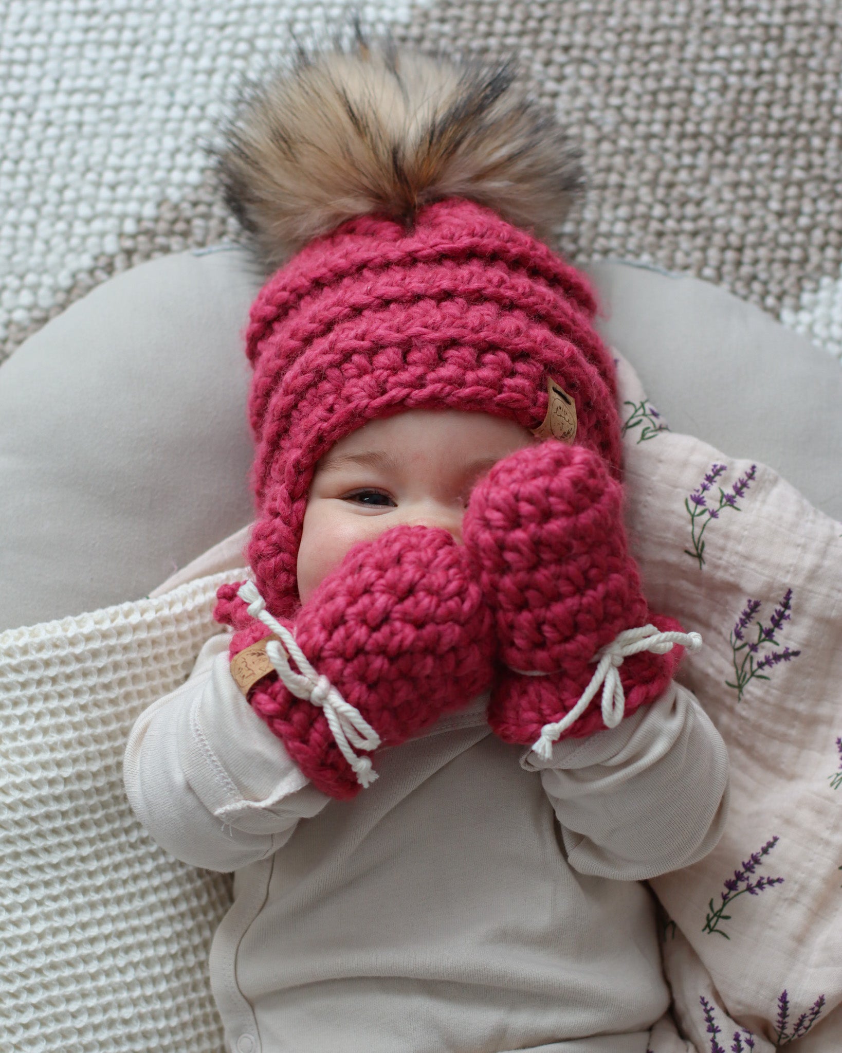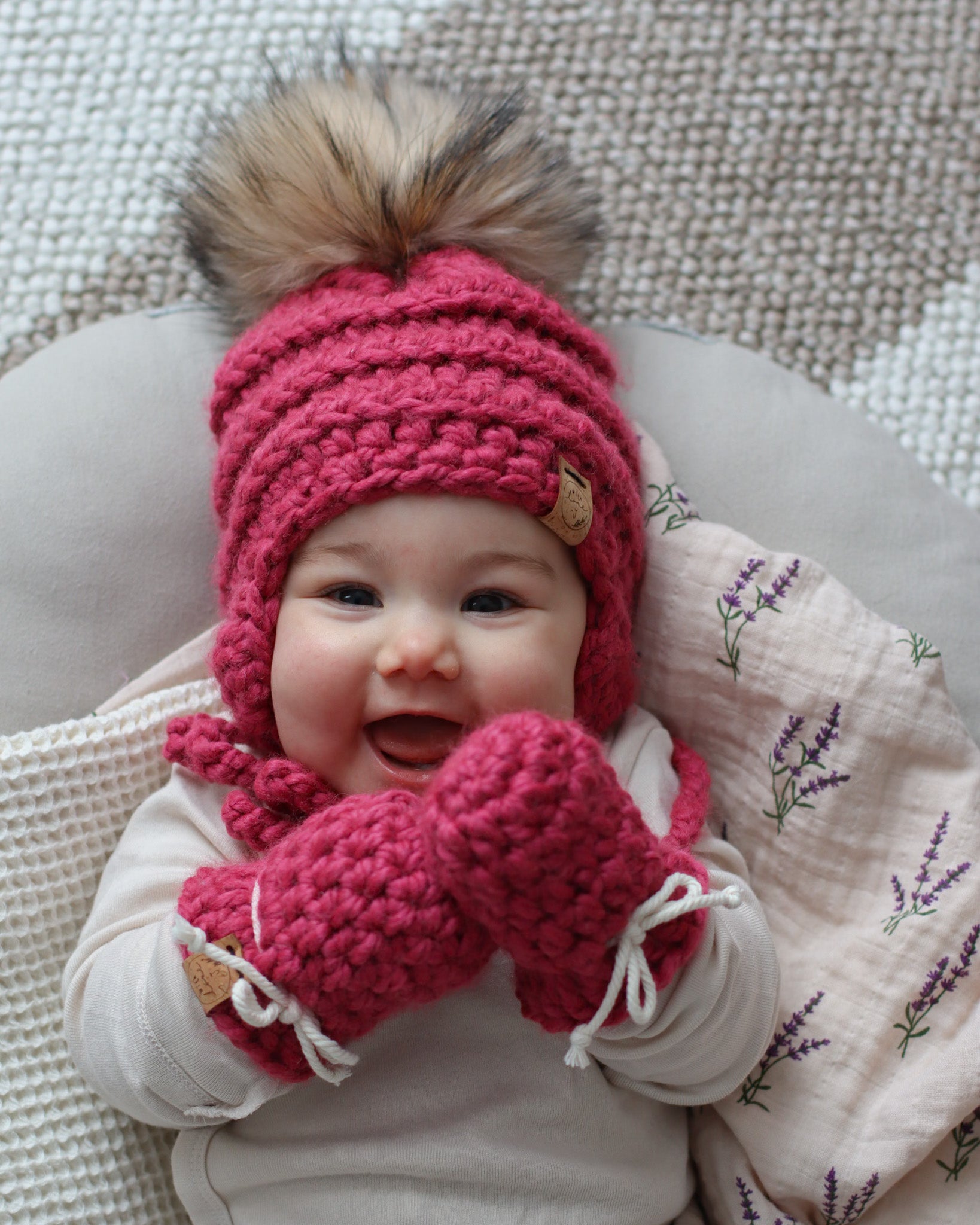 Une jolie tuque aux lignes horizontales pour garder la tête de mini au chaud.