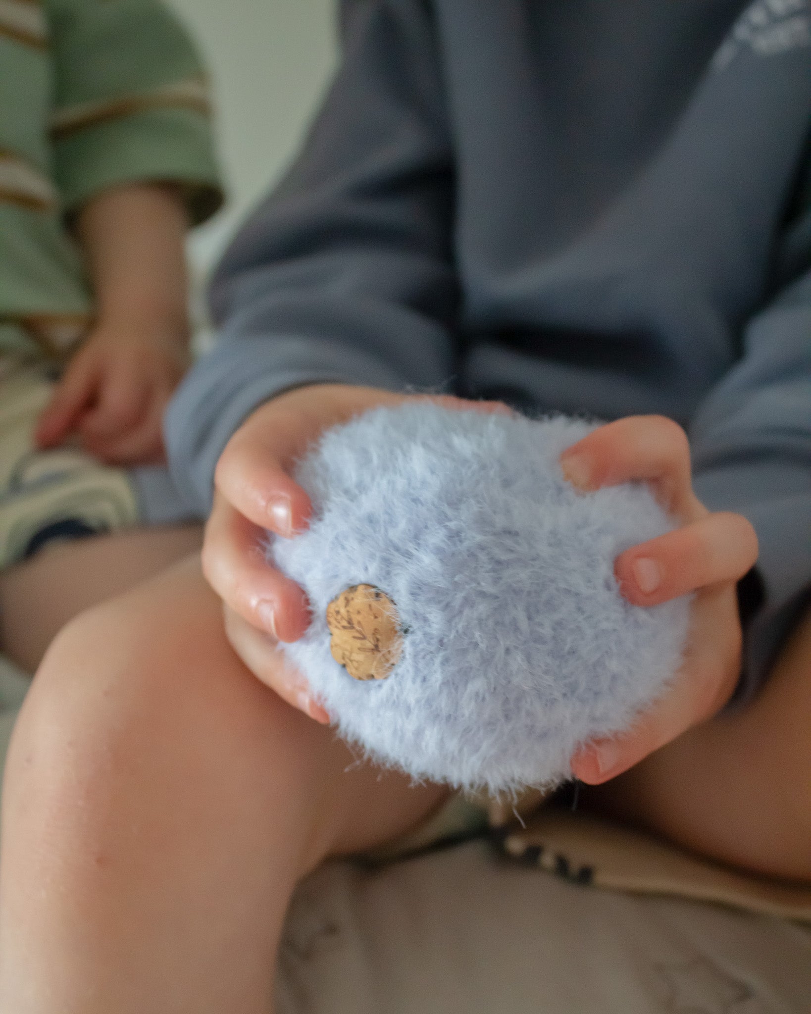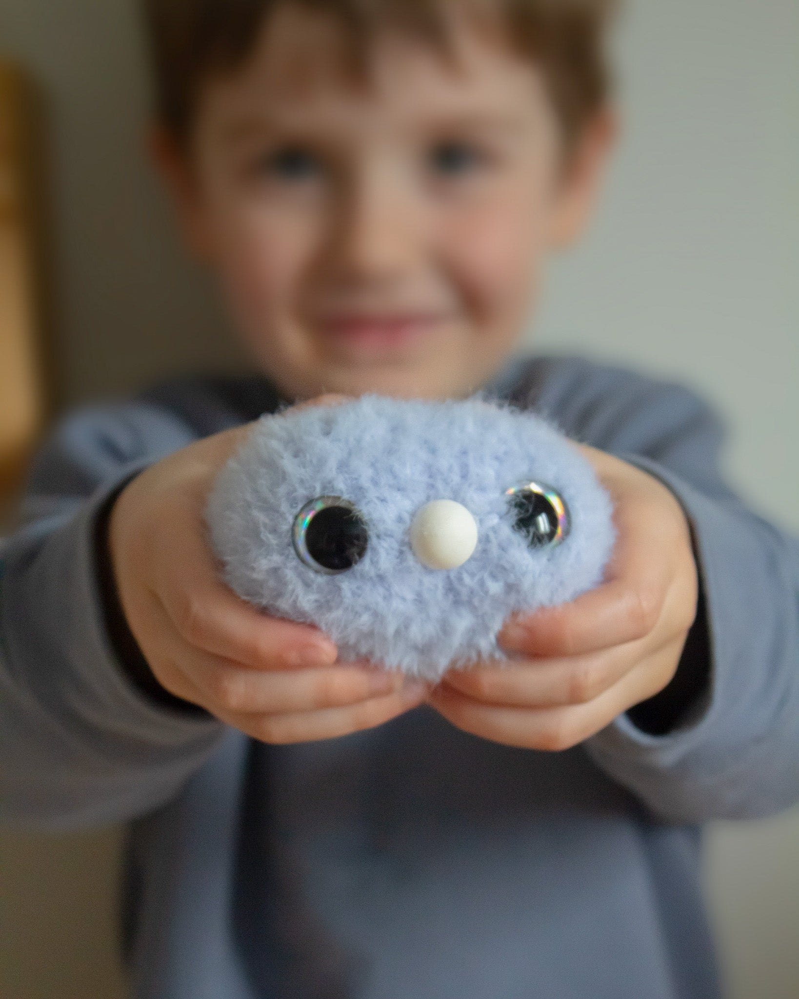 Une laine méga douce + des yeux trop adorables + une simili gomme balloune = LE BIDULE BULLE!