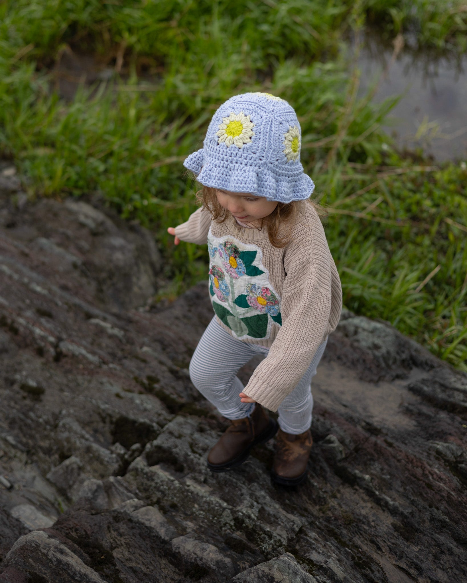 Le chapeau fleuronné est composé de cinq fleurs: quatre d'entre elles forment le contour puis une sa couronne. Fait d'une laine de coton hyper douce, il est aussi confortable qu'il est stylé. En plus, les combinaisons de couleurs sont infinies!
