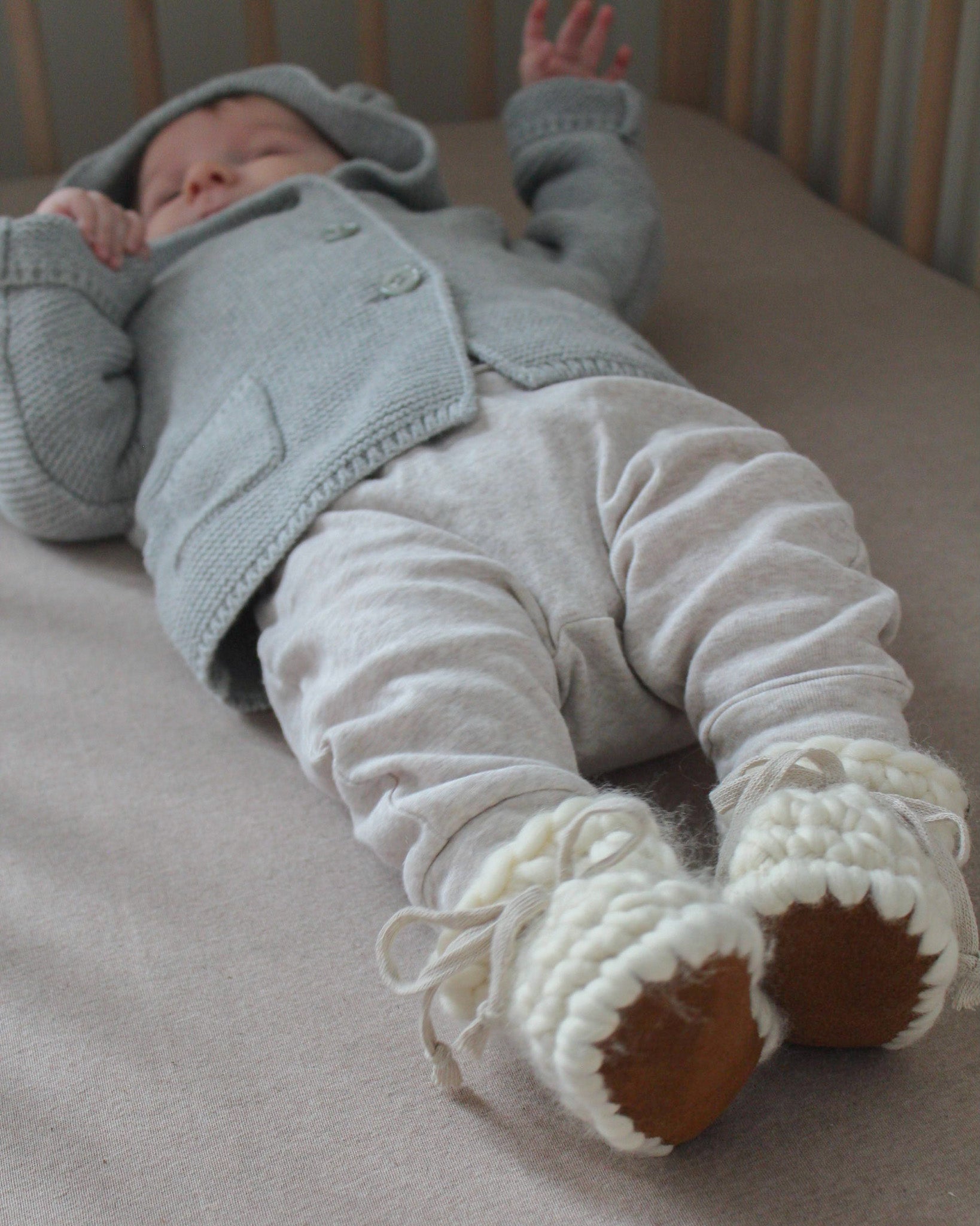 Les chaussons adorables sont faits avec une semelle de suède doublée en peau de mouton ainsi qu'une laine péruvienne 100% naturelle, 100% renouvelable et totalement biodégradable. Un coup de coeur assuré!